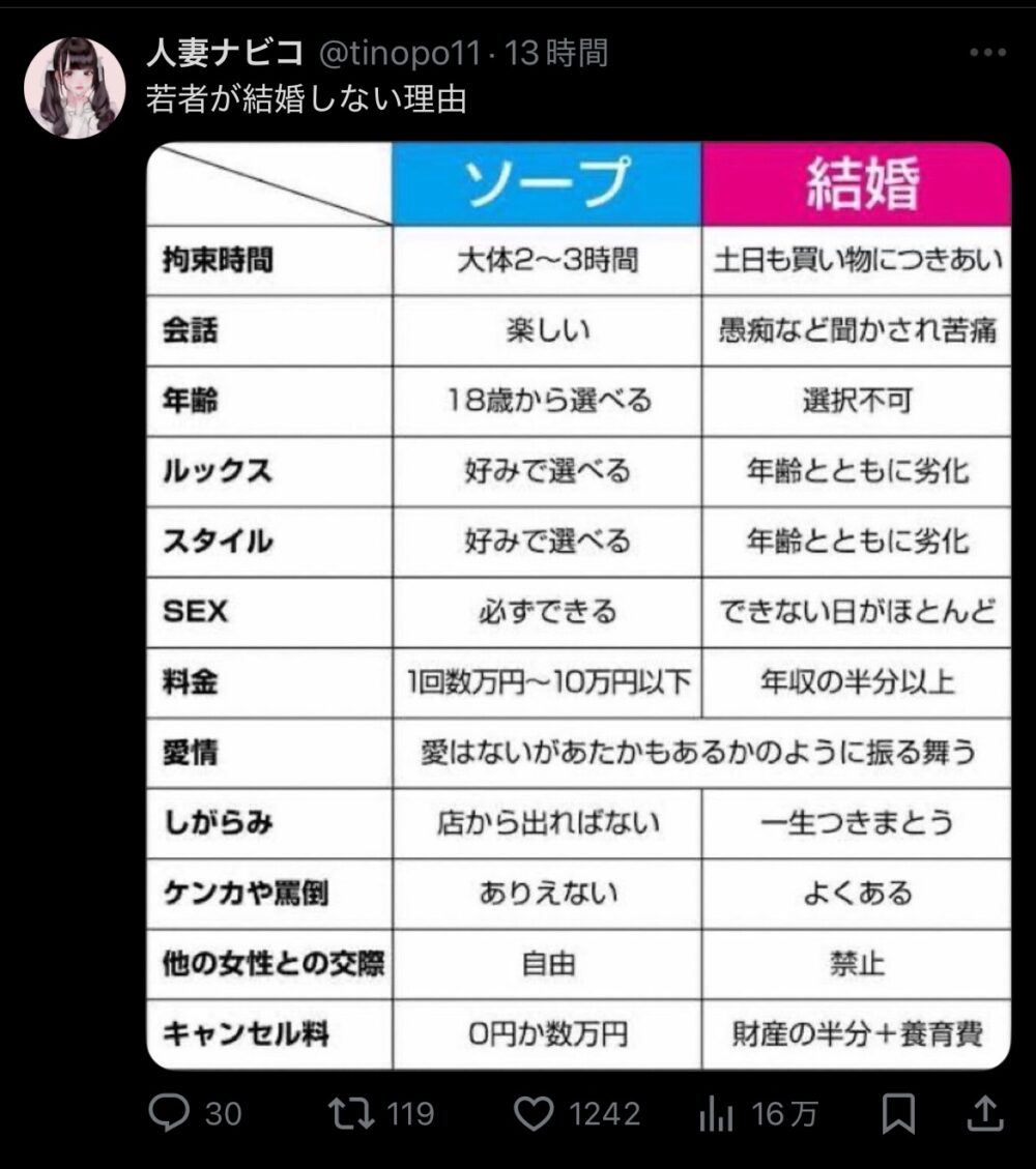 結婚の比較を風俗でするのはさすがに草なんよ