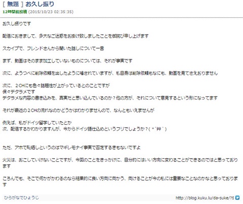 だーすけのその後のブログ記事見たら分かるが反省しとらんぞ
